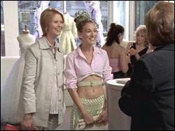 Miranda: Wait. I'm having a radical idea. [잠깐, 좋은 생각이 났어.] There's a horrible bridal shop two blocks away. [두 블록 떨어진 곳에 끔찍한 웨딩숍이 있어.] We could go. [거기 가자.]