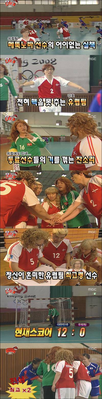 무한도전+유세윤 똘이 핸드볼도전 12-0 완패 몸개그 작렬