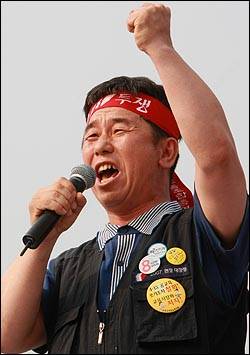 "민주노총이 국민 뒤따라가고 있다. 부끄럽고 미안하다. 이명박 대통령은 이대로 간다면, 임기를 다 못 채울 것이다. 국민 믿고, 80만 조합원 믿고 총파업 하겠다."