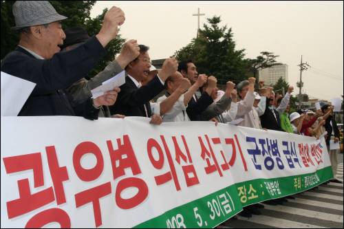 표명렬 대표는 "자식을 군에 보낸 부모님, 군을 직업으로 하고 있는 이들과 그 가족을 대신해 이 자리에 나왔다"며 "국가 대재앙에 이르게 할 수도 있을 광우병 의심 미 쇠고기 군내 유입을 어떤 난관이 있더라도 차단해 줄 것을 군 당국에 당부한다"고 말했다.