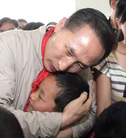 | 이명박 대통령이 30일 오후 지진 피해를 입은 중국 쓰촨성 두지앙엔시를 방문, 이재민촌에 있는 임시학교에서 아이들을 안아주고 있다.<사진=연합뉴스> |