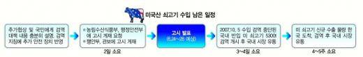 아울러 정부는 내장에 대한 병원성 미생물 검사로 O-157, 살모넬라, 리스테리아 등 주요 병원성 대장균 포함 여부를 조사해 허용치를 넘으면 해당 물량을 반송 조치하는 방안을 검토 중이다.