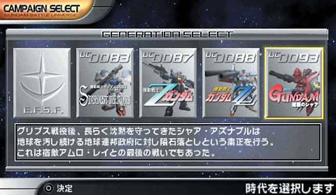 이번에 출시되는 '건담배틀유니버스'는 건담 배틀 시리즈의 제 4탄에 해당되는 게임으로, '건담'의 시작이라고 할 수 있는 1년 전쟁에서부터 제 2차 네오지온 항쟁까지를 담고 있다.