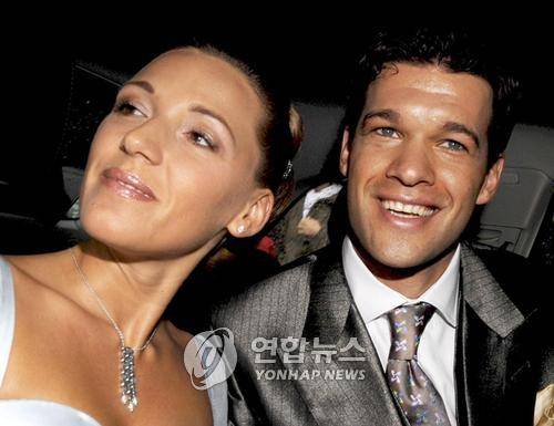 epa01413341 German football player Michael Ballack (R) and his wife Simone after their civil wedding as they leave the castle 'Kempfenhausen' near Berg, Germany, 14 July 2008. Festivities will take place at the 'Bavarian Yacht Club' in Starnberg on 14 and 15 July 2008. EPA/Peter Kneffel