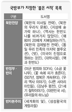 국방부가 대중성 높은 인문교양서와 십수만권이 팔린 베스트셀러까지 '불온 서적' 딱지를 붙여 수거명령을 내린 것으로 드러났다. 군 당국은 또 장병들의 개인 우편물 내용을 간부 입회 아래 확인하는 등 불온 서적 차단 대책도 전군에 지시했다.