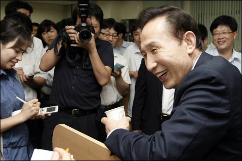 한 청와대 출입기자에 따르면, 이날 이 대통령은 휴가를 앞두고 청와대 출입기자들과 만나 약 30여분간 질의 응답 시간을 가졌다. 휴가에 관한 이야기와 아들의 이른바 '낙하산' 입사 문제도 오갔다. 민감한 현안에 관한 질문을 기자들이 빠뜨렸을 리 없다.