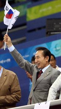 이명박 대통령이 베이징올림픽에서 거꾸로 된 태극기를 들고 우리 선수들을 응원해 구설에 올랐다. 다음 등 주요 포털사이트는 9일 이 대통령이 여자 핸드볼 한국-러시아전이 열린 베이징 올림픽체육센터에서 태극 문양과 4괘의 위아래가 뒤바뀐 소형 태극기를 흔들며 응원하는 사진을 올렸다.(사진)