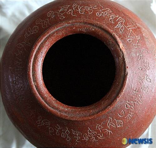 12일 문자해독자 박대종씨(45.대종언어연구소 소장)에 따르면 입지름 11.8㎝, 높이17.2㎝, 몸통지름 22㎝, 밑지름 8.5㎝크기의 홍도관 어깨부분에는 60자(합쳐진 문자 분해하면 66자)의 殷代(은대)문자가 새겨져 있다.