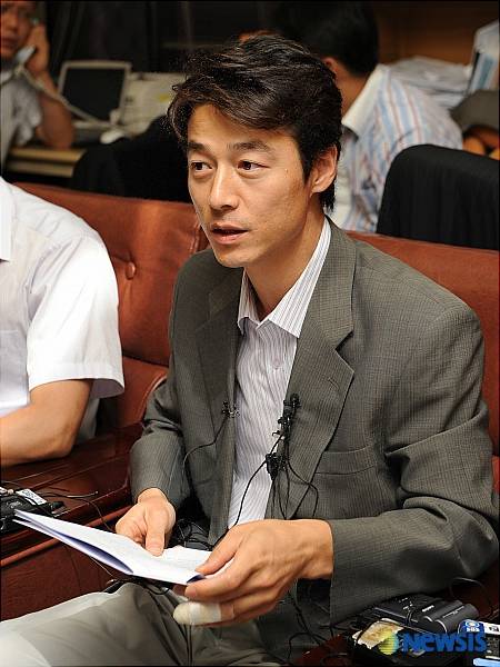 정연주 전 KBS 사장의 변호인인 송호창 변호사가 14일 오후 서초 서울중앙지검 기자실에서 검찰 조사와 관련해 브리핑하고 있다.