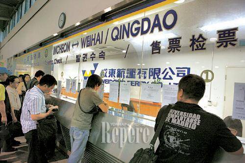 토요일 오후 3시가 되면 인천 국제 여객 터미널의 대합실은 사람들로 만원이다. 중국 산둥반도에 있는 항구도시 칭다오로 가는 배에 탑승하려는 사람들이 가방을 일렬로 세워놓고 수속이 시작되기만을 기다리는 것이다.