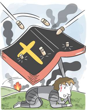 싸움은 항상 치열했고 크롬웰은 언제나 선두에서 싸웠습니다. 그런데 전쟁터에서 갑자기 크롬웰이 말에서 떨어졌습니다. 적의 총탄에 맞은 것입니다. 말에서 떨어진 크롬웰은 '이제 마지막이구나'라고 생각했습니다. 그러나 별로 아픈 곳이 없었고 총을 맞은 가슴도 아무렇지도 않았습니다. '이게 어떻게 된 일일까? 참 이상한 일이군!' 하며 자세히 살펴보니 총탄은 호주머니 속에 넣어 둔 성경에 박혀 있었습니다. 총탄이 박힌 곳은 전도서 12장 1절이었습니다. "너는 청년의 때에 너의 창조주를 기억하라!"