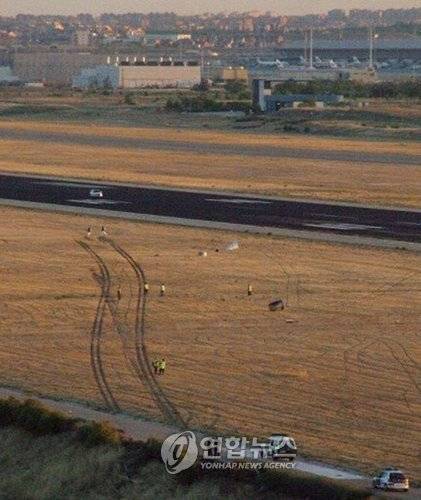 epa01468232 A handout picture provided by Spanish TV Broadcast Telecinco on 27 August 2008 shows two skid mark traces, of more than a kilometer long, that the plane which crashed a week ago in Barajas Airport left when trying to take off in Madrid, Spain. The MD-82, which belonged to Spainair airlines and travelling to Gran Canaria (Canary Islands), caught fire after crashing and killed 154 people, leaving 18 injured. Two of them have already been discharged. EPA/TELECINCO/ HANDOUT SPAIN OUT EDITORIAL USE ONLY