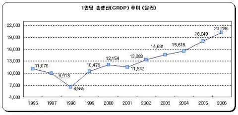 1인당 총생산은 20,239$로 '06년 이후부터 2만달러 시대 개막