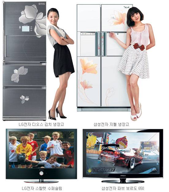 LG전자가 올해 내놓은 '스칼렛 수퍼슬림'은 세계에서 가장 얇은 44.7㎜ 두께의 LCD TV(42인치)다. 초고화질(풀HD)에 120㎐ 라이브 스캔을 적용해 잔상없이 선명한 화질을 즐길 수 있다. 삼성전자의 52인치 LCD TV '파브 보르도 650'은 최근 미국 소비자 리뷰사이트 씨넷으로부터 별 4개를 받아 베스트 HDTV 14종 가운데 하나로 뽑혔다. 크리스털 블랙패널 등 삼성의 화질 신기술이 망라된 데다 특유의 크리스털 로즈 디자인도 돋보인다. 빅사이즈 냉장고는 작은 신혼집에 들여놓기 어렵다. 용량은 크면서 부피만 줄인 신제품이 제격이다. 삼성전자가 최근 선보인 '지펠 빌트인 스타일'은 내부 기계실 공간을 최소화해 냉장고 깊이를 주방가구 규격인 600㎜에 맞췄다. 또 열기가 뒤에서 나오는 기존 냉장고와 달리 앞쪽 아래에서 나와 냉장고를 벽면에 밀착시킬 수 있다. LG전자 '아트 슬림 610 시리즈'도 대용량을 유지하면서 냉장고 깊이를 610㎜로 줄인 빌트인 스타일이다.