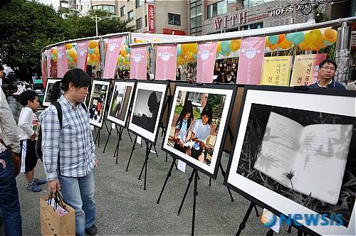 27일 오후 서울 홍대 주차장거리에서 열린 '제4회 와우북페스티벌'에 시민들의 눈길을 끌고 있다.