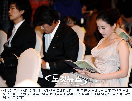 제13회 부산국제영화제 공식 일정으로 3일 오후 7시 부산 해우대 노보텔 앰버서더 호텔에서 열린 제9회 부산영평상시상식에서 '밤과 낮'이 최우수작품상을, '추격자'의 김윤석과 '뜨거운 것이 좋아' 김민희가 각각 남녀 주연상을 받았다.