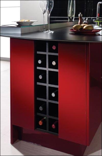 수납장에는 와인과 와인잔을 넣어도 좋지만, 와인바처럼 꾸미려면 아일랜드 식탁 상부의 천장에 와인잔을 걸 수 있는 잔걸이를 설치하는 게 훨씬 낫다.