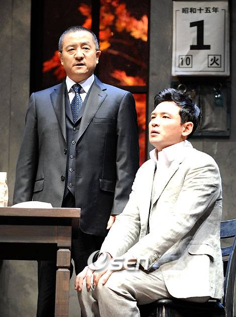 영화배우 황정민이 8년만에 꾸미는 연극무대인 연극 '웃음의 대학'(연출 이해제) 프레스콜이 24일 오후 서울 대학로 동숭아트센터 동숭홀에서 열렸다. '웃음의 대학'은 24일 저녁 초연해 내달 30일까지 이어지는 황정민-송영창의 2인극으로 일본작가 미타니 코우키의 작품이다. 송영창과 황정민이 취재진을 위해 하이라이트 장면을 연기하고 있다. /강희수 기자 100c@osen.co.kr