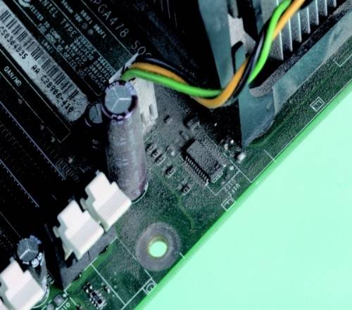 Q7. 메인보드에서 탄 냄새가 나고 부팅이 되지 않을 때는?CPU 근처에는 콘덴서라고 하는 동그랗고 길쭉한 것이 나열돼있는데 메인보드에서 탄 냄새가 나는 경우는 십중팔구 콘덴서가 타거나 폭발해버린 것이다. 콘덴서가 폭발하는 이유는 콘덴서 불량, PC 내부의 발열 현상 등으로 인해 콘덴서 주위의 온도가 지나치게 높아지기 때문이다.