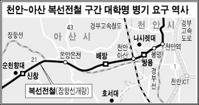 천안-아산 전철 역사 명칭 "우리 대학 이름을.."