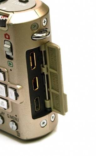 카메라 오른쪽에는 TV 출력, USB, 전원 어댑터 단자가 자리합니다. TV 출력은 카메라를 살 때 주는 전용 통합 케이블을 쓰면 사진을 쉽게 TV에서 볼 수 있습니다. USB 연결은 메모리카드 리더가 없을 때 사진을 PC로 옮길 때 씁니다만 웬만하면 메모리 리더기를 따로 사는 것이 편합니다.