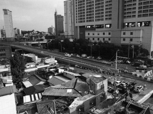 변형 모드를 인물용으로서 쓰면 재미있는 사진이 나오지만 풍경을 찍으면 낯익은 거리도 낯선 곳으로 바꾸는 이색적인 사진을 찍을 수 있습니다. 위의 두 사진을 비교하면 같은 곳이라도 다가오는 느낌이 크게 다를 것입니다. 첫 번째 사진이 중소 도시의 외곽 풍경 같은 느낌을 준다면 아래 사진은 좁고 낡은 도심의 느낌을 줍니다.