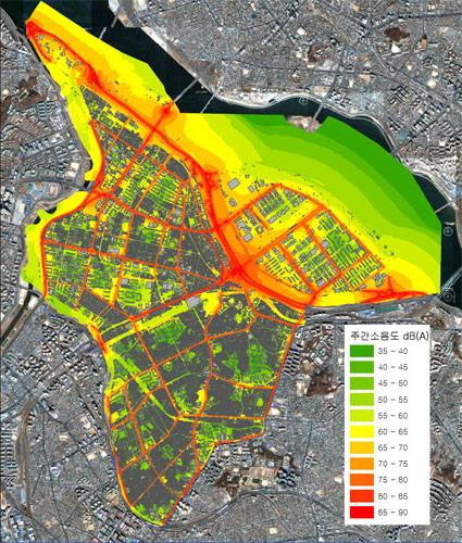 이에 환경부는 도심 속(주택가, 상업지역, 도로주변 등)마다 각기 다른 소음의 범위를 다른 색깔로 표시해 한눈에 소음도를 파악할 수 있는 소음지도를 작성 예정에 있다고 전했다.