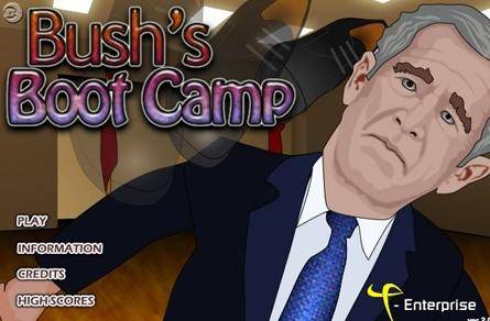 'Bush's Boot Camp'라는 게임은 대통령을 향해 날아오는 신발을 총으로 쏴 떨어뜨려야만 득점할 수 있다. 신발의 속도가 비교적 빠르기 때문에 난이도가 높다는 것이 네티즌들의 반응이다. ( www.t-enterprise.co.uk/flashgame/playgame.aspx?id=bushbootcamp)