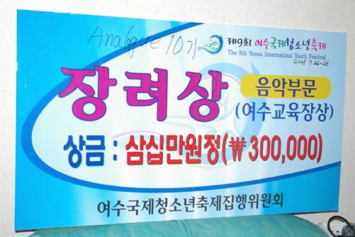 하지만 2008년도엔 달랐다. 2007년도에 떨어진 경험을 바탕으로 패인을 분석하고, 그 패인 분석에 따른 실행과 피나는 연습의 열매를 따 먹게 된 것이다. "7월 여수 국제 청소년 축제 전국 3위, 10월 청원 청소년 동아리 축제 입상, 11월 서울 문화존 경진대회 전국 3위, 11월 대한민국 청소년 동아리 경진대회 전국 3위". 이것이 2008년 한 해 '아날로그'가 거둬 들인 성적이다. 가히 기적이라 할 것이다. 농촌도시 안성에서 전국을 상대로 평균 성적 3위, 그러니까 명실상부 '청소년 그룹사운드 부분' 전국 랭킹 3위에 자리매김한 것이다.