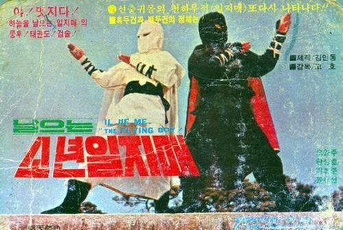 <사진1:3명의 일지매가 마지막에 대결을 펼치는 대반전(?)으로 마무리 됐던 `날으는 소년 일지매` 검은 복면의 일지매 역을 맡았던 오영주(당시 태권도 공인3품)는 2002년 아테네 올림픽에서 문대성에 패하기는 했지만 고국 그리스에서는 태권도영웅으로 대접받는 니콜라이디스를 길러낸 그리스 태권도 대표팀 감독으로서 태권도 세계화에 공헌하고 있는 인물로서 여전히 활약중이라고.>