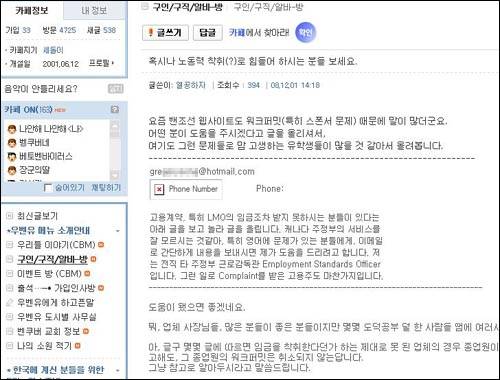 한 익명의 제보자는 2천만원을 요구받았다고 했다. 고용주는 돈을 완납해야지만 스폰서를 해주고 영주권 절차가 바로 들어간다고 했다는 것. 왜 돈이 필요한지를 묻자, "스폰서를 해주는 절차가 까다롭고 신청서 및 서류 제출시 돈이 필요하다고 했다"고 한다.