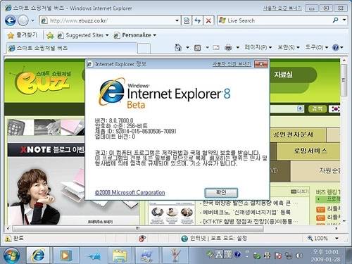 윈도우7에는 인터넷 익스플로러 8이 기본으로 탑재되어 있다. |