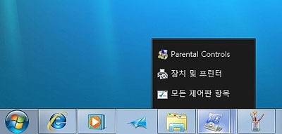 작업표시줄 위에 표시된 아이콘을 위에서 마우스 오른쪽 버튼을 누르면 최근 항목(점프리스트)이 표시된다. 예를 들어 윈도우 미디어 플레이어라면 최근 재생한 멀티미디어 파일이 목록으로 나타나며 인터넷 익스플로러는 방문한 웹사이트의 목록을 볼 수 있다. 클릭품을 최소한으로 줄인 설계다.