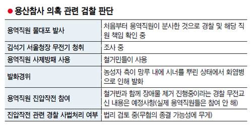검찰은 이미 경찰의 과잉진압에 대해 무혐의 판단을 내린 것으로 알려졌다. 참사의 원인이 된 발화 경위에 대해서도 농성자 책임으로 결론지은 상태다. 이 때문에 검찰이 수사결과 발표까지 미루며 수사를 확대하고 있지만 편파수사 논란을 잠재우기는 어렵다는 관측이 우세하다. 용역직원의 물대포 발사에 책임 있는 경찰 몇 명의 사법처리만으로는 '성난 민심'을 잠재울 수 없다는 것이다.