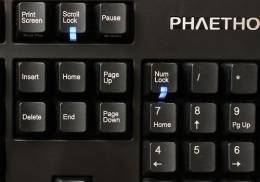 각 키의 문자는 레이저로 각인 처리가 되어 있다. 레이저 각인이 좋은 건 글자가 지워지지 않는다는 점이다. 일반적으로 볼 수 있는 저가형 멤브레인 키보드는 인쇄(엄밀하게 말하면 붙였다고 볼 수 있다) 방식을 사용한다. 아주 오래 쓰면 지워지는 구조다. 캡스 락, 넘버 락, 스크롤 락 키캡 위에 파란색 LED 인디케이터를 달아 키의 작동 여부를 쉽게 알 수 있게 한 것도 특징이다.