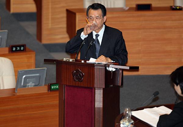 | ▲ 한승수 국무총리가 11일 국회 본회의에서 열린 용산참사 관련 긴급현안질문에 참석, 민주당 김유정 의원의 질문을 받던 중 물을 마시고 있다. ⓒ연합뉴스 | ||