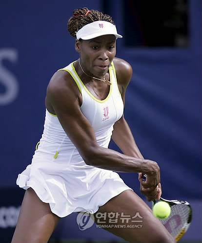 epa01638391 Venus Williams of the US returns the ball to Anastasia Pavlyuchenkova of Russia during their match at the Barclays Dubai Tennis Championships 2009 in Dubai, United Arab Emirates on 17 February 2009. EPA/ALI HAIDER