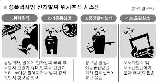 전자발찌 제도는 현재 '특정 성폭력범죄자에 대한 위치추적 전자장치부착법'에 따라 상습 성폭력범을 대상으로 지난해 9월부터 시행되고 있으며, 아동 유괴범에게도 이를 채우도록 하는 또다른 법안이 국회에 계류돼 있는 상태다.