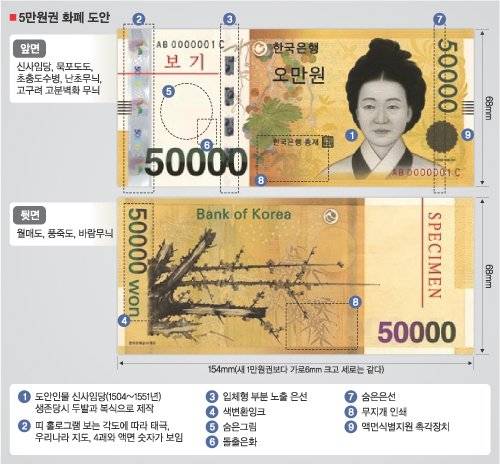 한은은 5만원권이 유통되면 일상 거래에서 편의성이 커지고 화폐 관리나 수표 발행 비용 등도 절감될 것으로 기대하고 있다.