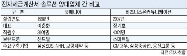 전자세금계산서 제도가 내년부터 시행될 예정인 가운데 관련 솔루션을 구축하는 업체들 간 1위 경쟁이 치열할 전망이다.