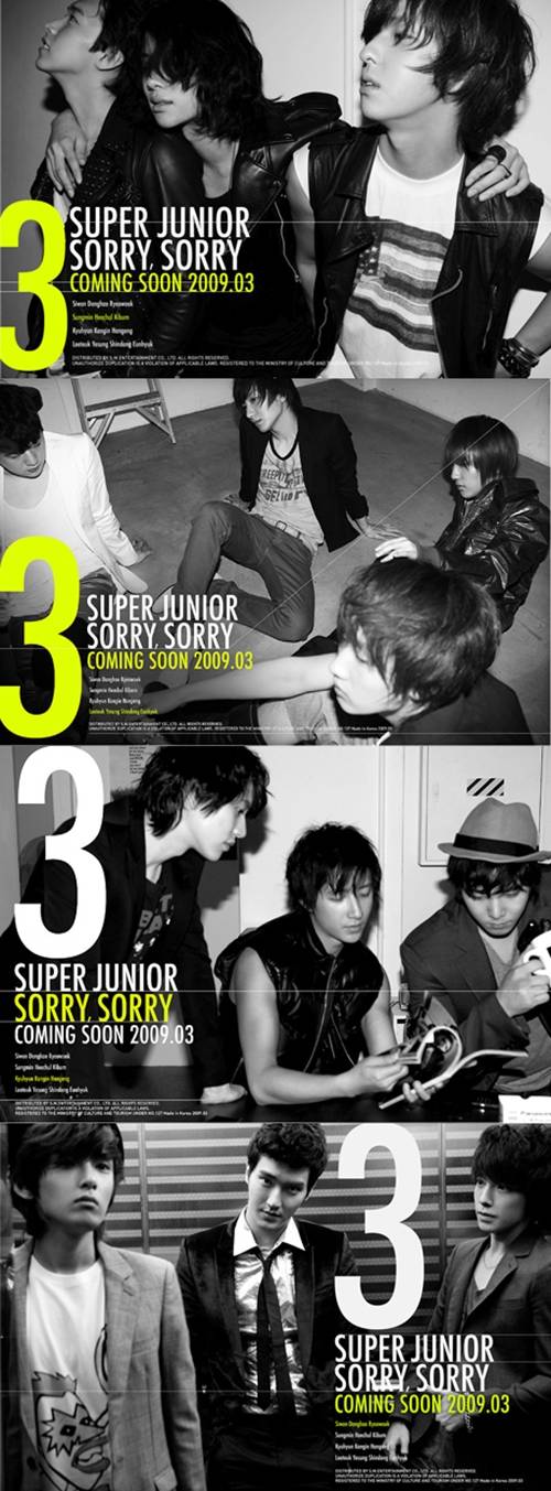 한편 슈퍼주니어 3집 타이틀곡인 '쏘리쏘리'는 작곡가 유영진이 만든 곡으로 중독성 강한 후렴구에 내가 먼저 사랑에 빠져 미안하다는 'SORRY(쏘리)'와 'baby'(연인을 부르는 애칭)와 같은 의미의 구어 'SHAWTY(쇼리)'가 반복돼 음악 팬들을 매료시킬 것으로 기대된다.