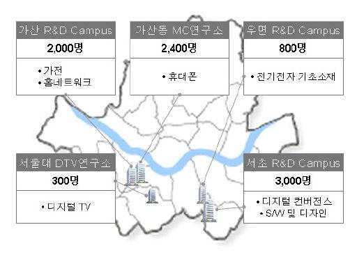 재계 전체로는 4대 그룹 가운데 SK를 제외하고 삼성그룹, 현대ㆍ기아차, LG전자(우면동 R & D캠퍼스 포함)의 본사 혹은 연구개발센터가 서초구에 들어서 있어 이 일대가 한국경제 성장엔진의 메카로 자리매김하게 됐다.LG는 이날 구본무 회장, 남용 LG전자 부회장 등이 참석한 가운데'LG전자 서초 R & D캠퍼스'개관식을 가졌다.