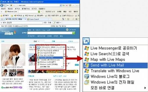 '바로 연결' 기능은 페이지에서 단어나 문구를 마우스로 클릭하면 메신저 공유, 관련 자료 검색, 위치 정보, 블로그 같은 서비스와 직접 연결할 수 있다. 기존 브라우저에선 복사와 창 열기, 검색 등 여러 단계를 거쳤지만 IE8은 이런 단계를 모두 없애 체감속도를 높였다는 것.