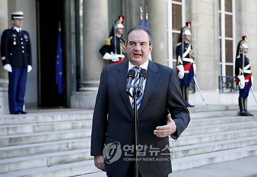 epa01692463 Greek Prime Minister Costas Karamanlis adresses the media as he leaves the Elysee Palace, in Paris, France, 09 April 2009 after French President Nicolas Sarkozy recieved him for a working lunch to discuss their countries' relationship. EPA/LUCAS DOLEGA