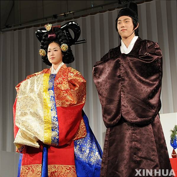 10일 일본 시즈오카에서 열린 2009 아시아 전통 결혼쇼에서 한국 대표단이 한복을 입고 전통혼례를 선보이고 있다.