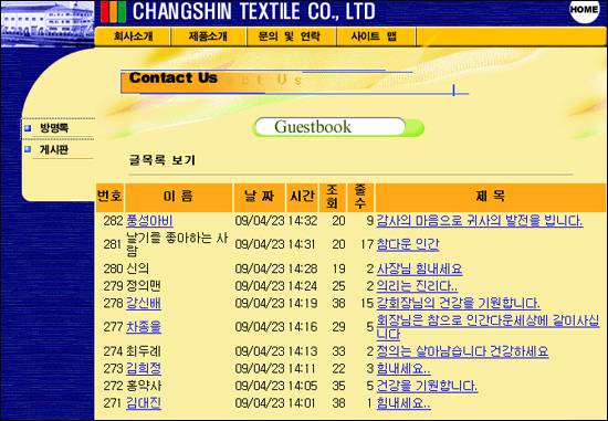 노무현 전 대통령의 후원자인 창신섬유 강금원 회장의 회사 홈페이지가 노 전 대통령을 지지하는 사람들의 글로 도배되고 있다.