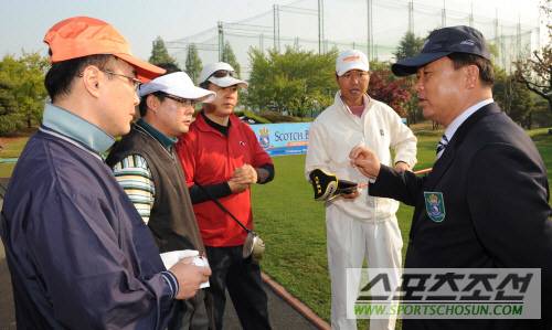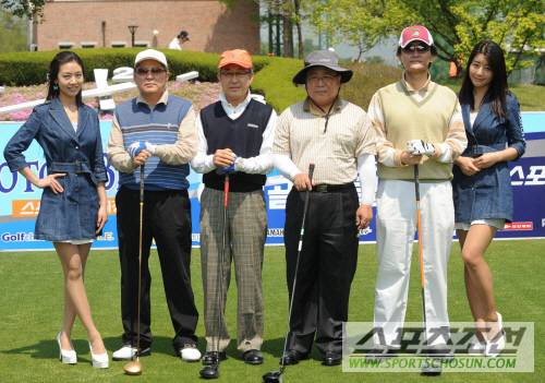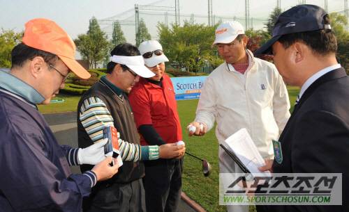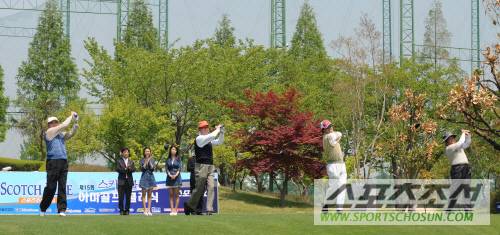 조재진 사장, 이상철 사장, 방준식 이사, 고성호 롯데칠성 이사가 시타를 날리고 있다 |