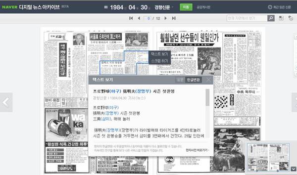 '디지털 뉴스 아카이브'는 옛날 신문을 디지타이징(Digitizing·컴퓨터가 쉽게 읽을 수 있도록 정보를 디지털화하는 것)해 웹 브라우저를 통해 종이신문을 볼 수 있는 서비스다. 이번 시범 서비스에서는 NHN과 제휴한 경향신문, 동아일보, 매일경제 등 세 개 매체의 1976년부터 1985년까지의 신문 기록을 확인할 수 있다. 네이버는 차후 정식 서비스에서 점차 데이터를 늘려 1920년부터 1999년까지, 80년 간의 과거 기사 정보를 제공할 계획이다.