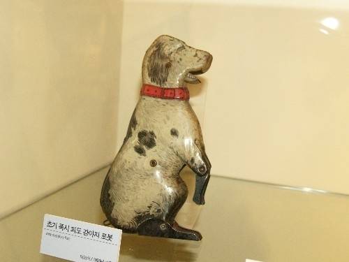1960~70년 한국에서 생산된 강아지 로봇. 태엽을 감아 사용하며 앞뒤로 움직인다. |
