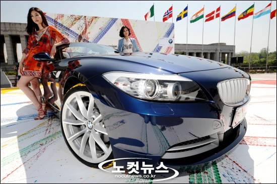BMW코리아(대표이사 김효준)가 7일 오전 서울 용산 전쟁기념관에서 가진 BMW의 대표적인 2인승 로드스트 뉴 Z4 신차발표회에서 모델들이 차량과 함께 포즈를 취하고 있다.